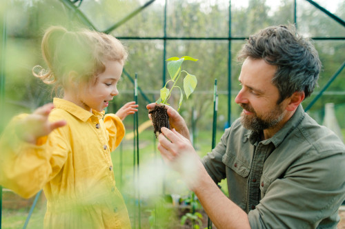 Velg naturlige materialer som harmonerer med hagens uttrykk